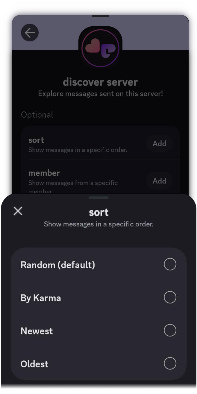 After Open Beta, we’ll also be implementing /discover global! Unlike Server, only messages with 5 Karma or above from servers and users that have marked themselves as Public will be shown here.